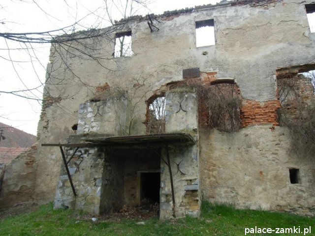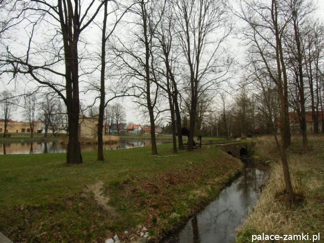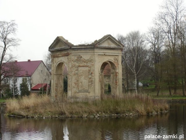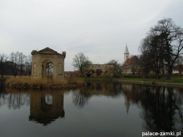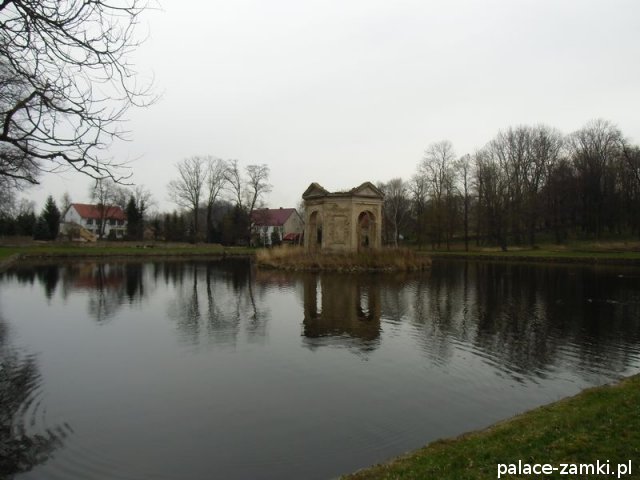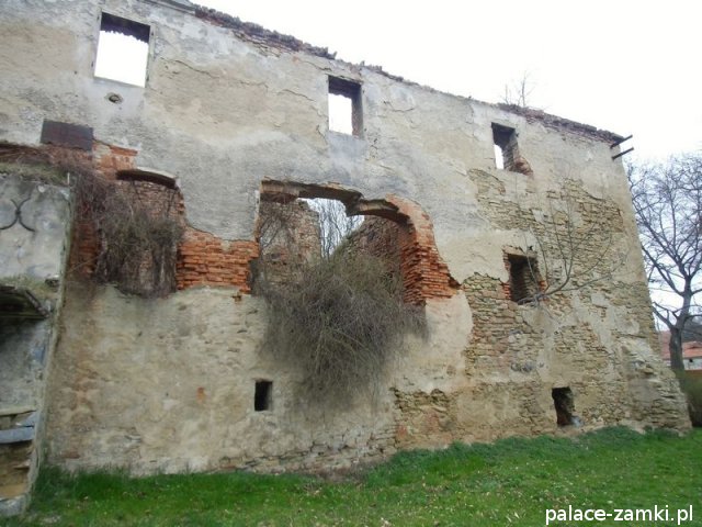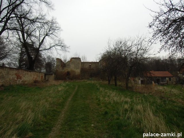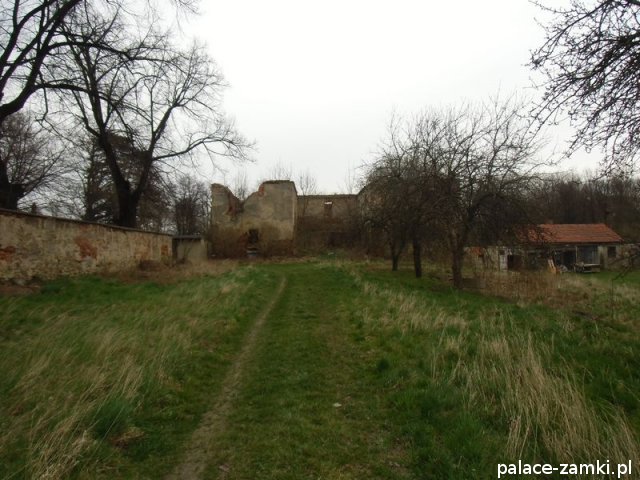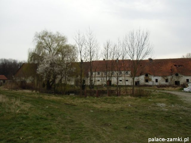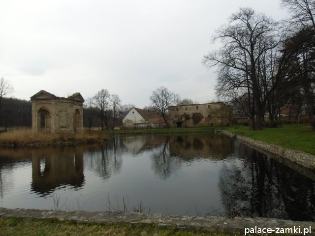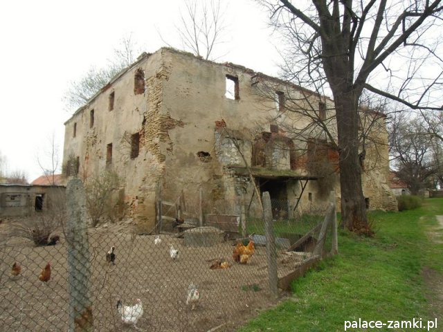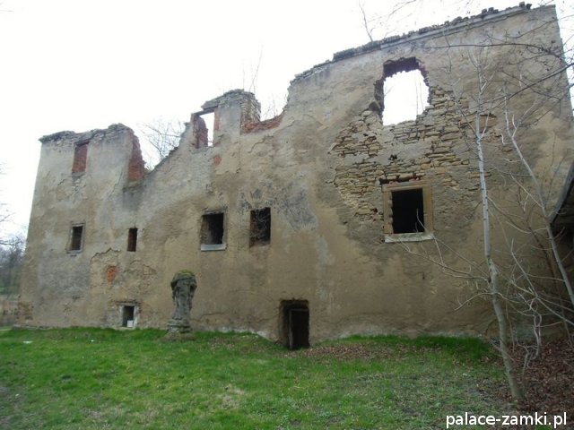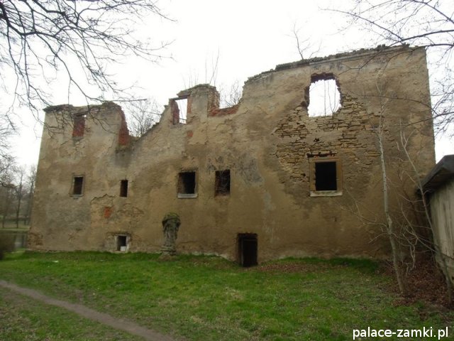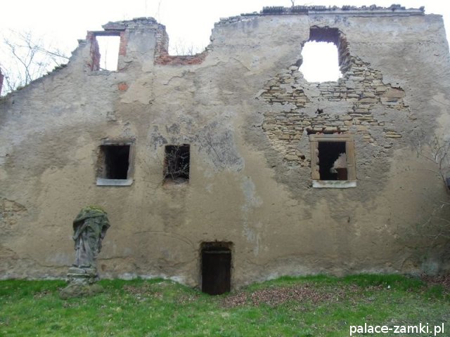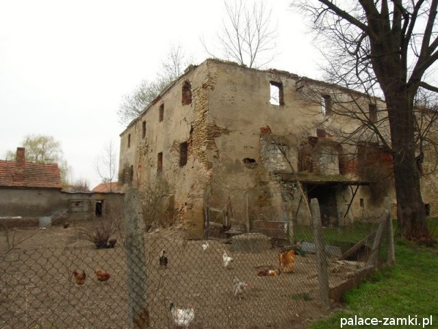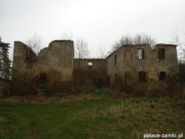 Renesansowy dwór przebudowany w XVIII wieku na pałac, powstał prawdopodobnie z inicjatywy hrabiego von Nostitz w poł. XVIII w. W 1825 r. wieś należała do hrabiego von Nostitz - Rineck z Niwnic. W 1840 r. właścicielem został, mieszkający w Pradze, hrabia Rzeszy Joseph von Nostitz - Rineck. Ostatnimi właścicielami byli hrabia Constantin von Pfeil (zabity w Rosji) oraz hrabia Rzeszy von Wolkenstein - Trostberg. Park założony już w 1656 roku i zmieniony w XIX wieku. Na wysepce pałacowego stawu stoi ruina neobarokowego pawilonu z XIX wieku. Zachowały się także inne elementy i budowle ogrodowe. Po 1945 roku w pałacu ulokowano PGR, a w 1953 roku spłonął i obecnie pozostaje w ruinie.
