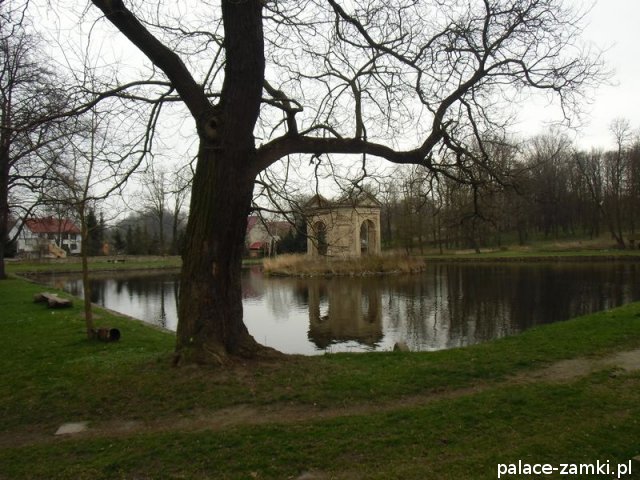 Obok pałacu znajduje się Kościół parafialny p.w. Nawiedzenia NMP wzmiankowany w XIV wieku.
