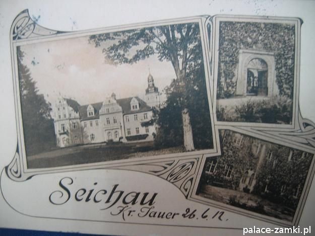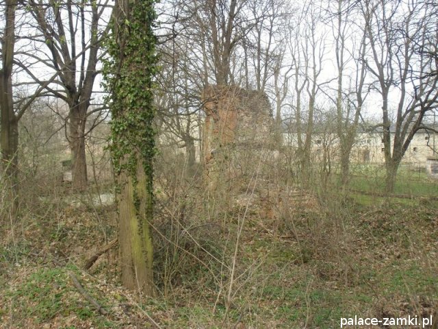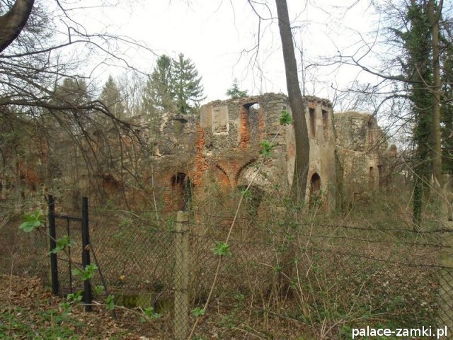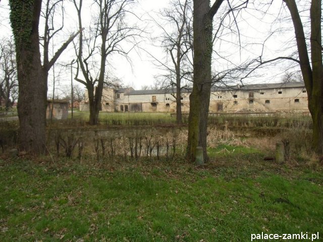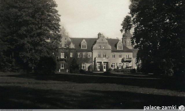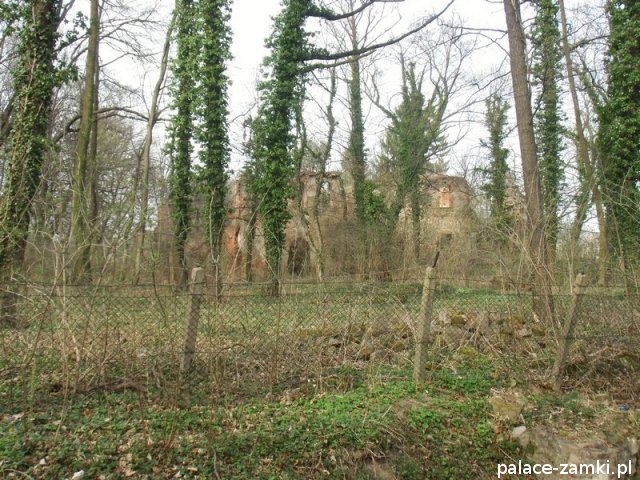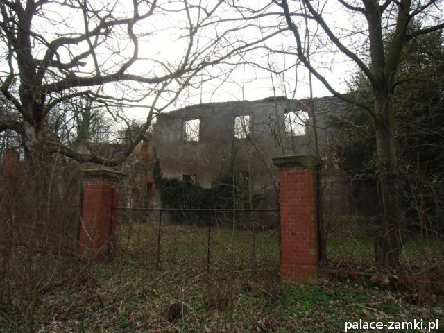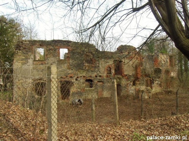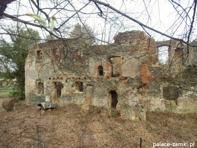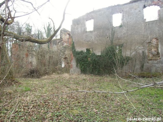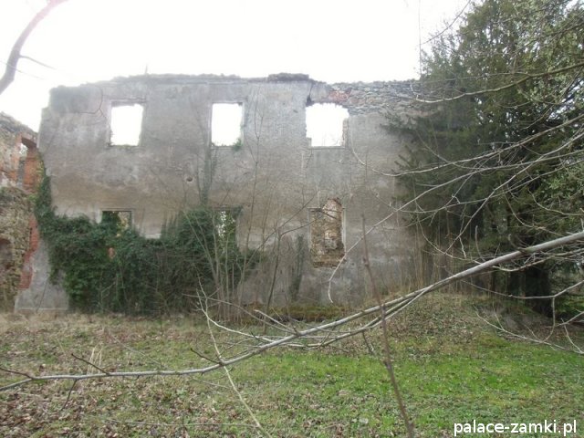 Pierwotny, renesansowy dwór obronny otoczony fosą, został wzniesiony pod koniec XVI w. przez ówczesnego właściciela von Gersdorfa na miejscu dawnego grodziska. Następnie w XVIII w. przebudowano go na barokowy pałac, który w XIX w. otrzymał swój neorenesansowy wygląd. W 1830 r. pałac przechodzi na własność Manfreda von Richthofena, podróżnika, kolekcjonera, który zgromadził w pałacu dużą kolekcję dzieł sztuki i zbiory etnograficzne z całego świata. Zasadził on w przypałacowym parku i oranżeriach dużą ilość egzotycznych roślin, a dla swojej żony (szwedzkiej aktorki) wybudował w parku basen kąpielowy. Pod koniec II wojny światowej gościł tu przez tydzień gubernator Hans Frank, przywożąc ze sobą kolekcję dzieł sztuki zrabowaną na Wawelu i muzeum Czartoryskich. W 1945 roku pałac spłonął i pozostaje w ruinie.