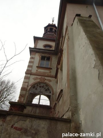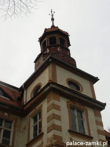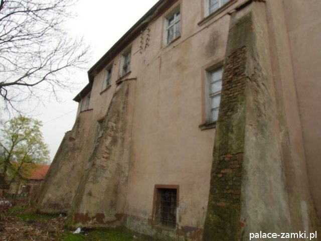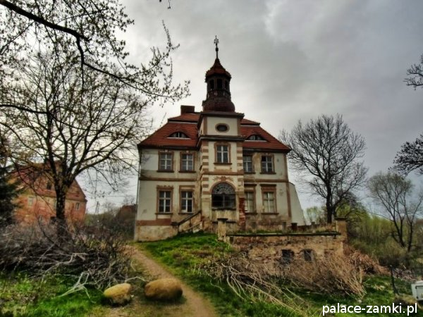 Pałac, zbudowany z cegły i kamienia na planie prostokąta, nie jest może wielki, ale ma bardzo ładną frontową pięcioosiową elewację, na której znajduje się zegar słoneczny. Kondygnacje są wyraźnie oddzielone gzymsem. Również od frontu znajduje się czworoboczna wieża, pod która jest główne wejście do pałacu. Nad samymi drzwiami pod wieżą umieszczono herby dawnych właścicieli. Wejść do środka niestety nie można. Boczne i tylne elewacje nie są już tak okazałe, ale warto obejść pałac dookoła by zobaczyć masywne podpory ściany bocznej od strony stawu. Sam staw jest mocno zaniedbany, jak i cały park pałacowy.
