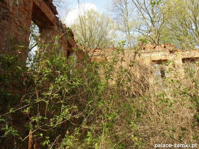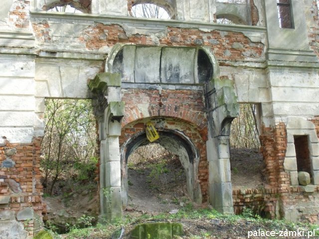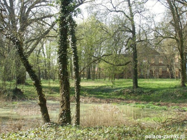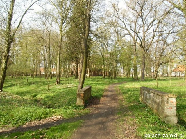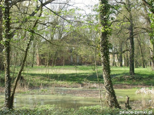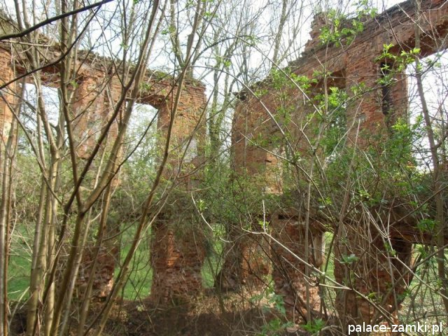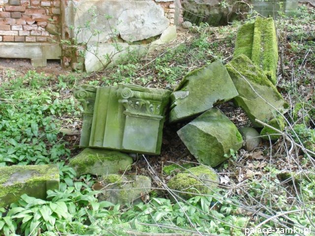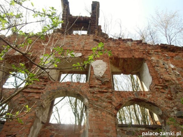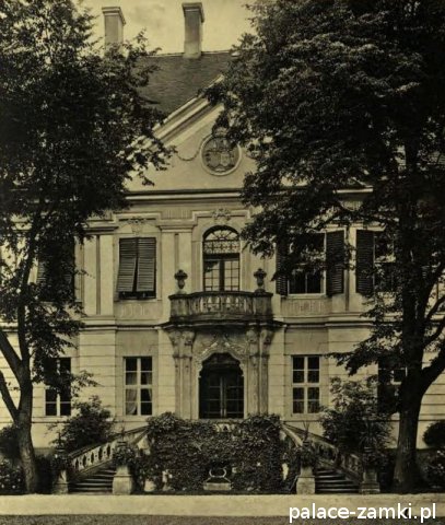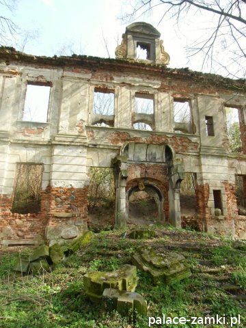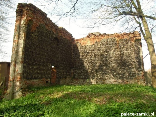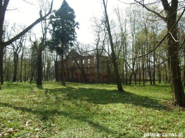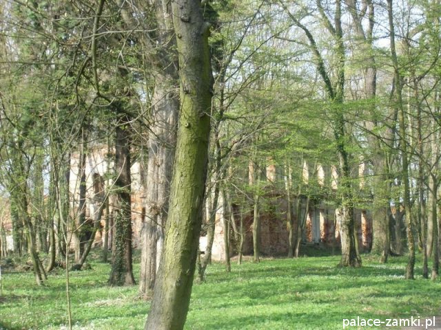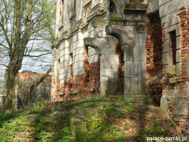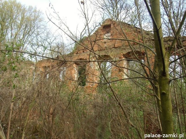 Pałac wzniesiono w 1725 roku dla rodziny von Nostitz i w ich posiadaniu był do roku 1792. W początku XIX wieku był przebudowany przez ówczesnych właścicieli, rodzinę von Prittwitz. Pałac jest budowlą dwukondygnacyjną o rzucie prostokątnym i założeniu dwutraktowym, z pilastrowym podziałem elewacji. Całość była przykryta czterospadowym, ceramicznym dachem mansardowym z lukarnami. Na uwagę zasługuje bogato zdobiony, piaskowcowy portal głównego wejścia, oraz kartusz herbowy. Od czasu przebudowy w 1906 roku do pałacu od strony południowej przylegał tzw. dom kawalerów. W 1851 r. właścicielem rezydencji był kapitan Gustaw Brüstlein, a w latach 1901-1905 rotmistrz Herman Pratsch. Rozbudowy pałacu dokonał kolejny właściciel, kapitan Gotthard Wirtsch, który przebywał tutaj od 1905 r. do 1922 r. Prawdopodobnie wówczas pałac skierowano fasadą frontową na wschód, w stronę parku. Pierwotnie, bowiem fasada frontowa zwrócona została na zachód, ku rozległemu dziedzińcowi folwarcznemu. Pośrodku dziedzińca, na osi rezydencji usytuowano owalny basen. Do dziś zachowały się zabudowania gospodarcze oraz pozostałości fontanny. W parku zachowało się również sporo ciekawych okazów drzew jak: dęby, platany, graby, a także pomnikowe dziś żywotniki olbrzymie (tuje) i cyprysiki groszkowe. W styczniu 1945 roku wieś znalazła się w pasie ciężkich walk frontowych i kilkakrotnie przechodziła z rąk do rąk walczących stron. Zniszczeniu uległ wówczas pałac i od tamtej pory, pozbawiony jakiejkolwiek opieki pozostaje w stanie zaawansowanej ruiny.