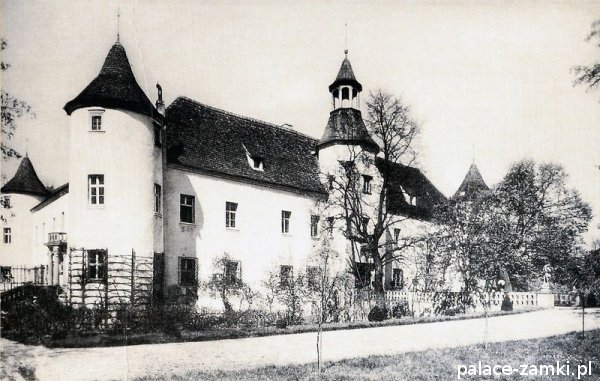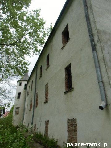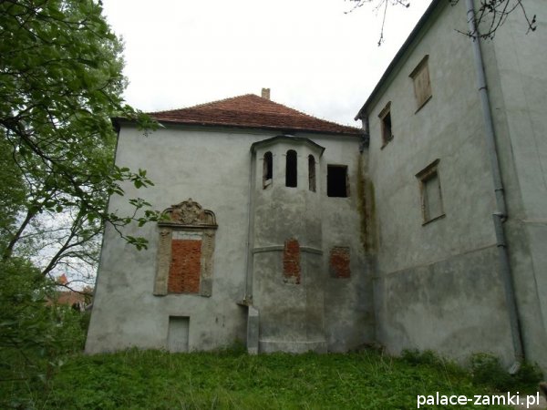 Styl obecnego pałacu wskazuje, że powstawał etapowo około 1530- 1630 roku wokół wewnętrznego dziedzińca. Powstał w ten sposób dwór wodny otoczony fosą. Najstarszym wydaje się być skrzydło południowe flankowane alkierzami i zawierające centralnie usytuowaną wieżę bramną. W roku 1583 dwór przebudowany został przez Georga von Kottwitz młodszego. Powstały wówczas malowane renesansowe stropy, w tym jeden z datą 1583 oraz heraldyczne malowidła ścienne z herbami spokrewnionych rodzin. W latach dwudziestych XVII w. zbudowano najnowsze skrzydło zachodnie z wielka salą na piętrze. Wówczas powstał też wystrój elewacji utrwalony na rycinie z poł. XVIII w. Elewacje przeprute były rzędami okien. Ściany szczytowe elewacji bocznych oraz połacie dwuspadowych dachów ozdobiono dekoracyjnymi szczytami. W 1722 roku pałac spłonął i został odbudowany nie tracąc swego dawnego stylistycznego charakteru. Bryłę pałacu przekształcono około połowy XVIII w. Po 1759 roku powstały: portal balkonowy z herbami Carla Sigismunda von Gellhorn i jego żony, poprzedzany schodami oraz taras i schody do ogrodu przy skrzydle zachodnim. W roku 1905 nastąpiła przebudowa i renowacja pałacu. Przeprowadzono tez konserwację odkrytych stropów i malowideł ściennych. Istniał wówczas jeszcze piaskowy portal z roku 1584. Kolejny remont pałacu przeprowadzono w roku 1933. Prace zabezpieczające przeprowadzono w latach 1983- 1990.