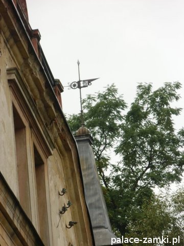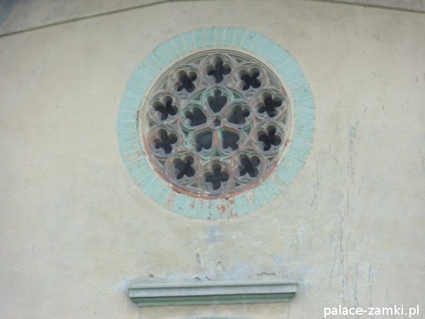 Pozostałe budynki z zespołu pałacowego także są bardzo ładne- np. na jednej z oficyn znajduje się stary, niedziałający już zegar, a na innej znajduje się pięknie, okrągłe okno ze zdobionymi ramami z piaskowca.