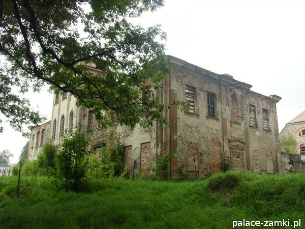 Ruina pałacu to dwukondygnacyjny budynek, częściowo podpiwniczony, wzniesiony na planie wydłużonego prostokąta o nieznacznie zaokrąglonych narożach. Frontowa i ogrodowa elewacja są 13-osiowe, które zaakcentowane zostały 3-kondygnacyjnymi, 3-osiowymi ryzalitami i zwieńczone naczółkami. Okna mają proste obramienia, jedynie w drugiej kondygnacji ryzalitów zostały zwieńczone arkadą. Elewacje boczne są 5-osiowe. Wewnątrz pałacu układ pomieszczeń jest korytarzowy z obszerną sienią pośrodku, wspartą na toskańskich kolumnach.