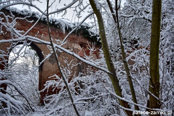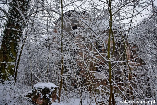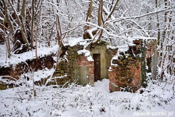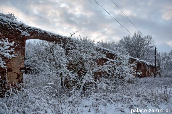 Po drugiej stronie drogi szutrowej biegnącej w kierunku wschodnim, na wzgórzu, znajdują się ruiny mauzoleum właścicieli panujących tu przed wojną. Grobowiec ten został wysadzony w czasie działań wojennych lub krótko po wojnie przez radziecką armię[1].