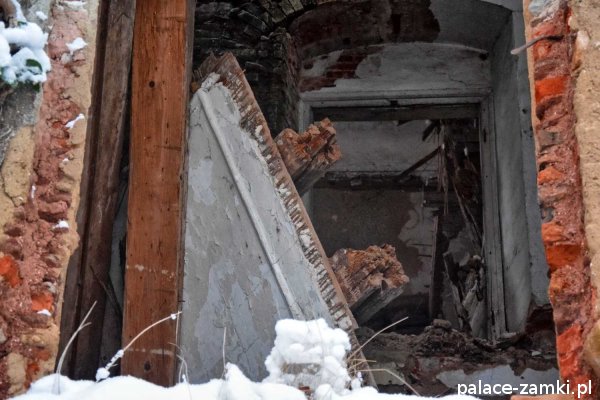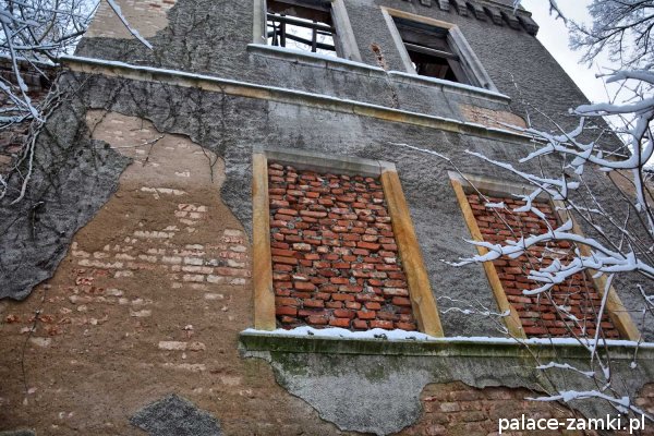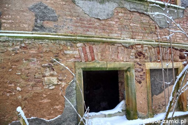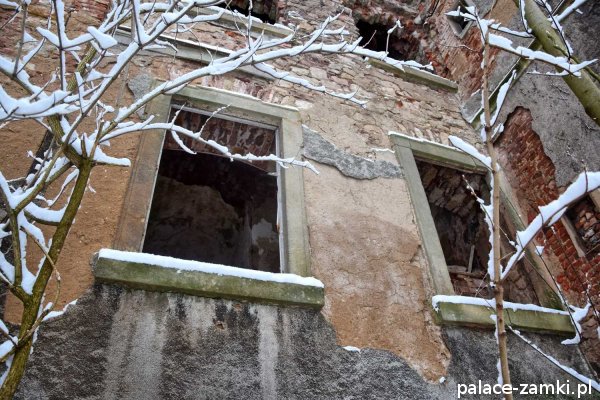 Pałac, to budynek dwukondygnacyjny, a natomiast jego ryzalit jest trzykondygnacyjny. Taras był dwukondygnacyjny i dostawiony prostopadle jako boczne skrzydło. Niestety z tarasu została już tylko część ścian parterowej kondygnacji. Na parterze w pałacu znajdują się jeszcze sklepienia kolebkowe i krzyżowo- kolebkowe, a na wyższych piętrach stropy belkowe, częściowo już zawalone. Otwory okienne i drzwiowe były zdobione piaskowcem, który w części został zapewne zrabowany i najbardziej bolesna dla obiektu jest utrata zdobionego portalu. Na pałacu została już tylko część dachu, która zapewne i za niedługo też się zawali. Zabudowania gospodarcze niestety nie są w lepszym stanie i tylko nad częścią jednego możemy zobaczyć szczątki dachu. Oficyna mieszkalna dziś, to jeszcze większa ruina. Żal patrzeć na te wszystkie zrujnowane budynki, które jeszcze za czasów PGR-ów był w stanie dobrym, o które nie zadbały powołane do tego instytucje i już chyba tradycyjnie złość człowieka bierze.
