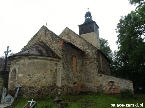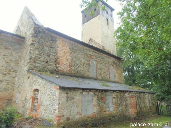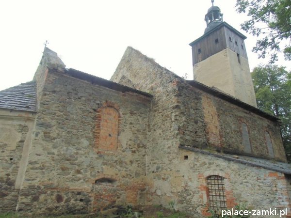 Poszukując pałacu w Kościelnikach Średnich oczywiście nie mogliśmy powstrzymać się od zrobienia kilku zdjęć dostrzeżonych w tej miejscowości ruin kościoła Najświętszej Maryi Panny. Kościół znajduje się tuż obok pałacu, a dookoła niego znajduje się stary cemntarz.