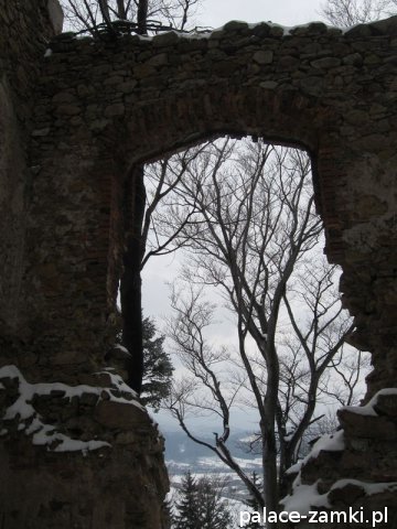 Na zamek prowadzi turystyczny szlak niebieski z Marczyc oraz szlak żółty od Staniszowa. Obiekt zbudowany na planie kwadratu. Murowany z cegły i dużych nieregularnych bloków kamiennych. Bryła zwarta, masywna od strony północno-wschodniej okrągła wieża. W narożu północno-zachodnim narożniku ulokowano przyporę. Obiekt nakryty był dwuspadowym dachem. Ściany północna i południowa zwieńczone trójkątnymi szczytami z blankami. Do wnętrza prowadziły schody znajdujące się po stronie zachodniej. Wnętrze składało się z dwóch pomieszczeń. Pomieszczenia przykryte były sklepieniami.