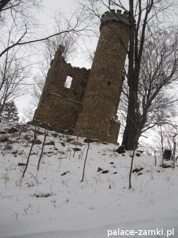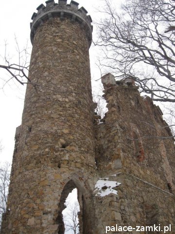 Na Grodnej górze wzniesiono ok. roku 1806 przez hrabię Henryka von Reuss, właściciela pobliskiej wsi Staniszów, wieżę w formach neogotyckich, która była schronem myśliwskim i wieżą widokową. W roku 1842 obiekt przebudowano do kształtu obecnie widocznego. Forma neogotycka pałacu była w ówczesnych czasach niezwykłe modna, była wyrazem sentymentalnego upodobania do komponowania miejsc nastrojowych, pełnych poetyckiej symboliki. Obiekt był celem spacerów, miejscem biesiad po polowaniach. Zamek to nietypowy - bo już w założeniu miał być romantyczną sztuczną ruiną przypominającą średniowieczne warownie. Niegdyś dodatkowym atutem góry był brak drzew, a co za tym idzie - wspaniały widok na Karkonosze.