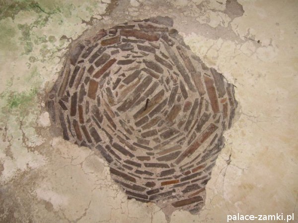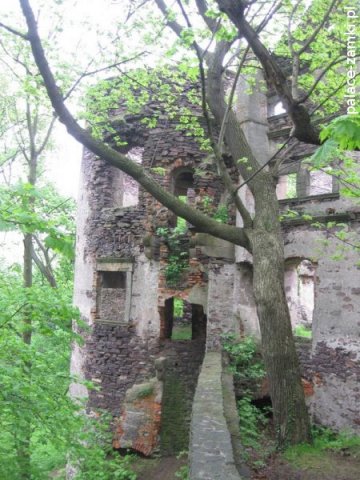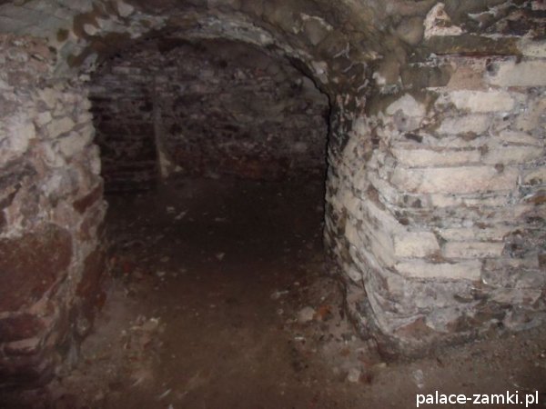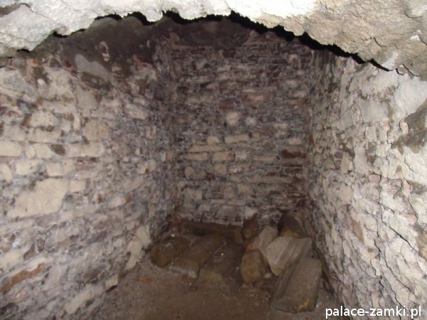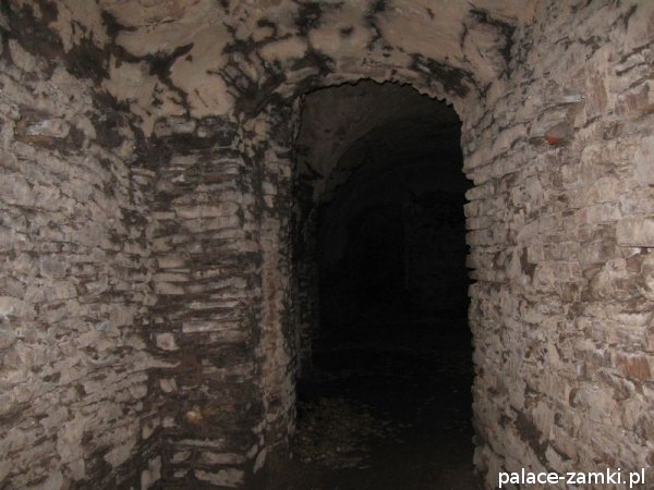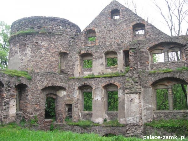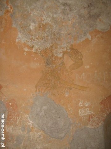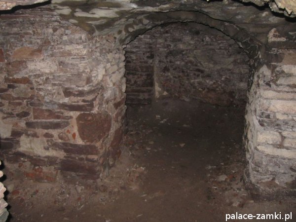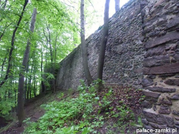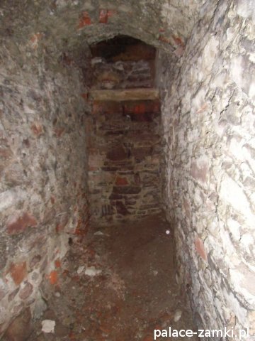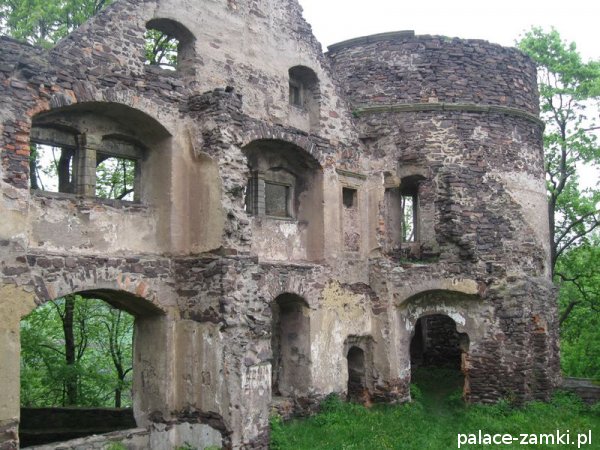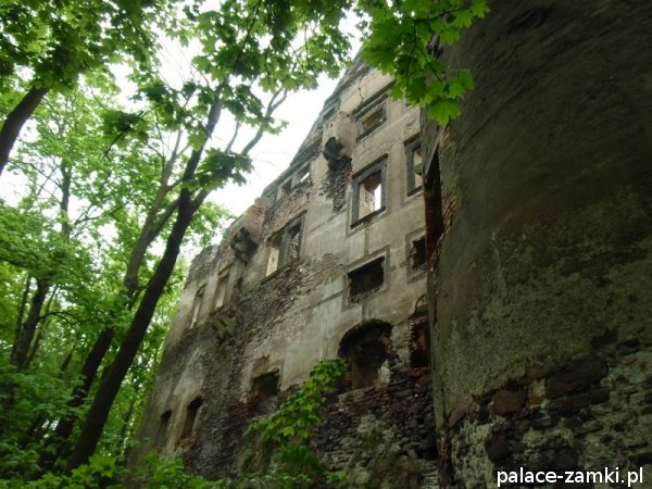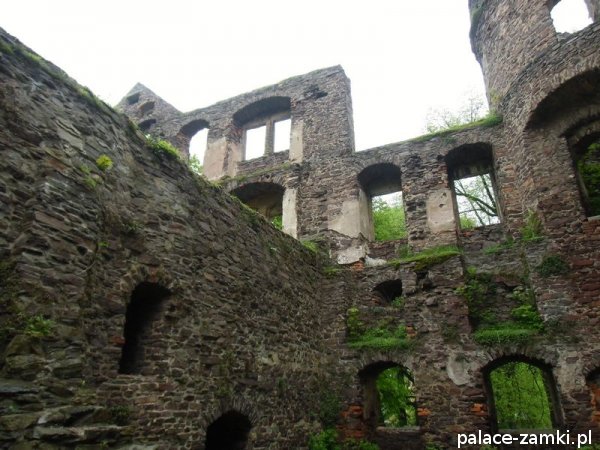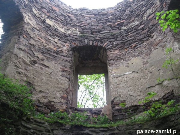 Na miejscu drewnianego grodu w połowie XIV wieku Świnkowie stawiają wykonaną z łamanego kamienia masywną, o 2,5 metrowej grubości murów wieżę mieszkalną, otoczoną murem obwodowym. Podpiwniczona wieża była postawiona na planie prostokąta o wymiarach 12 x 18 metrów i była nakryta dwuspadowym dachem. Wejście do wieży prowadziło przez zachowany do dzisiaj gotycki portal, na parterze mieściła się sala rycerska, a na wyższe kondygnacje prowadziły drewniane schody.