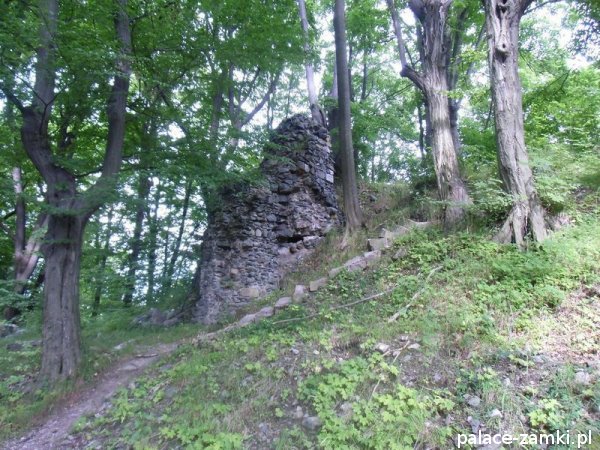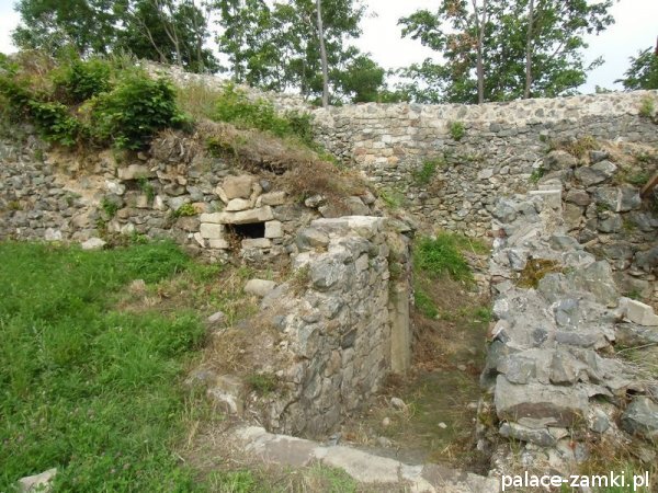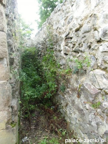 -Około 1163 r. za panowania księcia śląskiego Bolesława I Wysokiego, pojawiły się pierwsze elementy kamienne. W tym sześcioboczna wieża, kaplica, część mieszkalna oraz mur obwodowy.