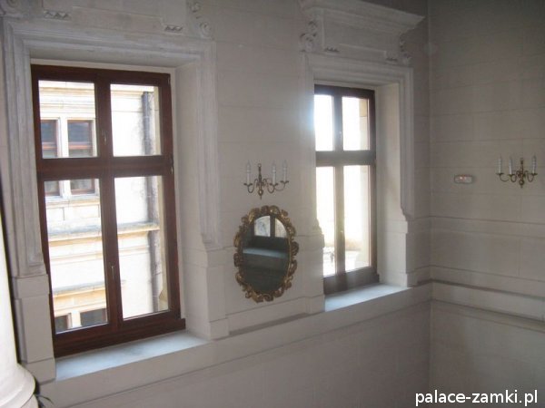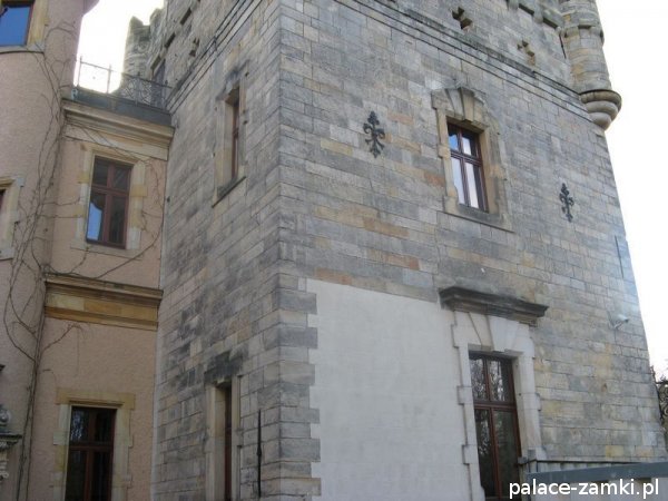Po oglądnięciu wnętrza idziemy zwiedzić zamek z zewnątrz. Zamek składa się z dwóch dziedzińców otoczonych skrzydłami o formach neorenesansowych i neogotyckich. Zbudowany jest on na planie prostokąta z jednym dziedzińcem w środku, w którym znajduje się fontanna i ławki, na których można odpocząć i podziwiać budowlę.