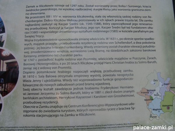 -1579 Rechenbergowie otrzymują od cesarza Rudolfa II zamek wraz z folwarkiem jako lenno- przebudowano go na rezydencję renesansową. Ufundowanie ołtarza w kościele pw. Trzech Króli. Kliczków otrzymał prawa miejskie i targowe;