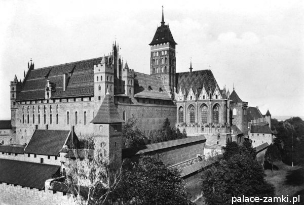 W 1309 roku podjęto decyzję o przeniesieniu siedziby- rezydencji wielkiego mistrza zakonu z Wenecji do Malborka, który tym samym stał się stolicą Państwa Zakonnego. Wraz z wielkim mistrzem na zamek przybyła duża liczba braci zakonnych, co wymagało przebudowy i rozbudowy istniejącego kompleksu. W Zamku Wysokim najwięcej miejsca zajęły dormitoria czyli sypialnie, poza tym mieścił się tutaj kapitularz i refektarz konwentu. Dokonano znaczącej rozbudowy kościoła zamkowego pod wezwaniem Najświętszej Marii Panny – przedłużono go od wschodu, pod nim umieszczając kaplicę świętej Anny przeznaczoną na miejsce pochówku wielkich mistrzów. Na wschodniej fasadzie, we wnęce okiennej prezbiterium umieszczono ogromną 8-metrową figurę Matki Boskiej z Dzieciątkiem, wykonaną ze sztucznego kamienia i pokrytą później mozaiką, która uległa zniszczeniu w 1945 roku wraz ze wschodnią częścią kościoła, a łączna masa segmentów posągu wynosiła około 15 ton. Na dawnym przedzamczu- Zamku Średnim usytuowano właściwą rezydencję wielkich mistrzów. Powstały tutaj pałac zawierał na głównej kondygnacji, którą było pierwsze piętro od strony dziedzińca, wspaniałe pomieszczenia reprezentacyjne, a jego część od strony Nogatu, uformowana w kształcie wieży obronnej, należy do najpiękniejszych budowli europejskiego gotyku. Malbork w 1411 roku był oblegany przez wojska polsko-litewskie pod wodzą króla Władysława Jagiełły po bitwie grunwaldzkiej.