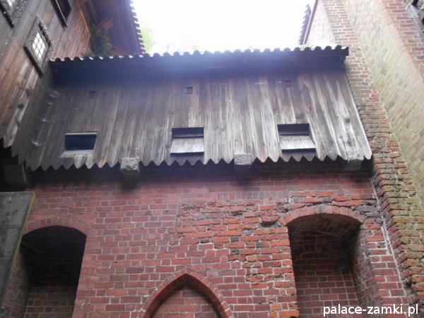 Zamek Wysoki, czworoboczny, z dziedzińcem otoczonym krużgankiem, kościołem Najświętszej Maryi Panny z kaplicą grobową świętej Anny, wieżami Kleszą i Wróblą