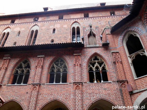 Zamek Średni, wzniesiony w miejscu byłego przedzamcza, trójboczny, z rozległym dziedzińcem otwartym ku Zamkowi Wysokiemu, który oddzielonym jest od niego murem i fosą, z kaplicą świętego Bartłomieja, Wielką Komturią, Infirmerią, Wielkim Refektarzem, Pałacem Wielkich Mistrzów, Refektarzem Letnim, Refektarzem Zimowym, wieżą Kurzą Nogą
