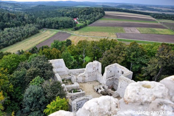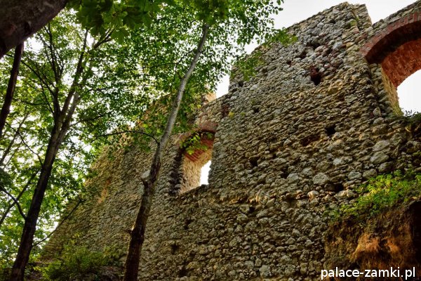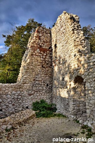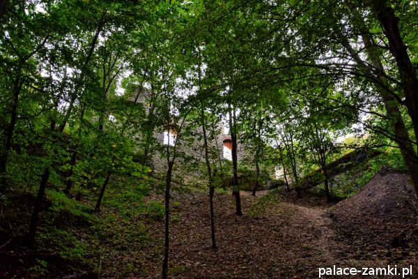 Przed wiekami do wieży przylegał kilkukondygnacyjny dom mieszkalny. Do podnóża wieży możemy dziś bardzo prosto dotrzeć dzięki nowym, drewnianym schodom, które zainstalowano wzdłuż muru. Na samą wieżę, z której możemy podziwiać panoramę okolicy, wejdziemy dzięki nowej klatce schodowej zbudowanej z metalowej konstrukcji i krat pomostowych. Podzamcze zachodnie powstało w wieku XVI i pełniło jedynie funkcje mieszkalne. Świadczą o tym pozostałości kilku okien, strzelnicy, oraz wewnętrznego podziału na komnaty. W jego murach znajdują się również ślady południowej bramy zamku. W południowym narożniku dziedzińca znajduje się studnia zamkowa.